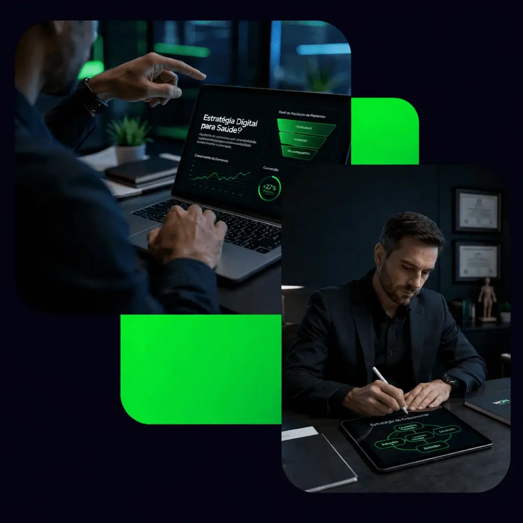 Trabalhamos com clínicas, médicos, dentistas especialistas e farmácias de manipulação que precisam gerar demanda qualificada, fortalecer autoridade e aumentar a conversão sem depender de improviso, marketing genérico ou fórmulas prontas.